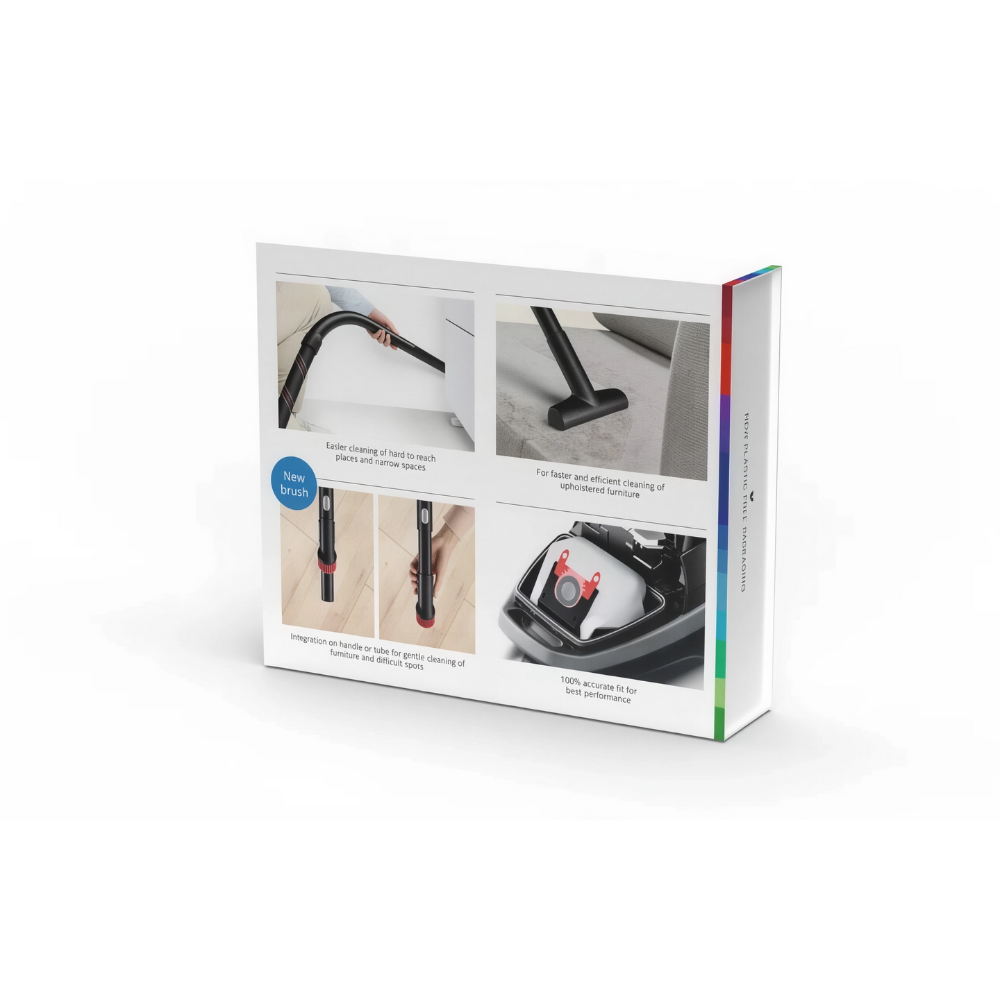 بفضل نطاق التنظيف الذي يصل حتى ١٥ متر، لن تضطر إلى تغيير المقبس بشكل متكرر أثناء التنظيف. كما تضمن تقنية PowerProtect الحفاظ على قوة الشفط حتى مع امتلاء الكيس. بالإضافة إلى ذلك، تأتي المكنسة مزودة بمجموعة من الملحقات التي تساعدك في الوصول إلى الأماكن الضيقة وتنظيف الأثاث والمفروشات بسهولة.