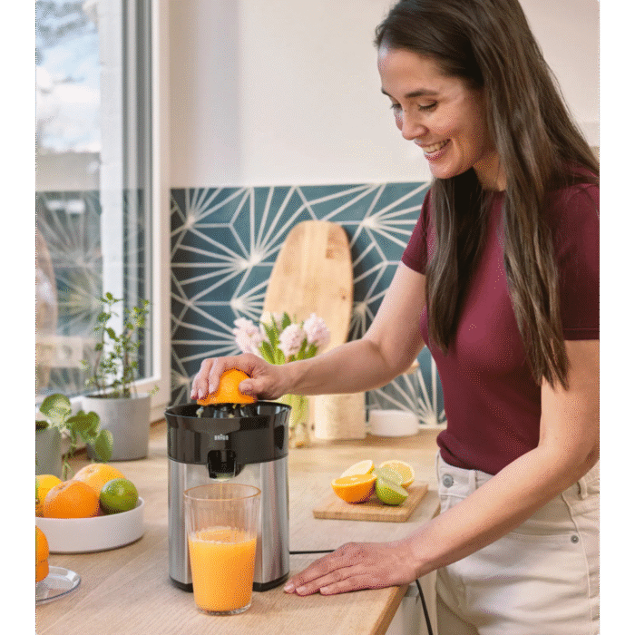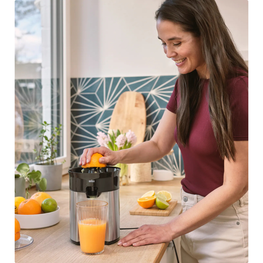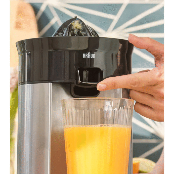 تمنحك براون CitrusQuick 5 CJ5050BK عصيرًا طازجًا بسرعة وبنظافة بفضل السكب المباشر إلى الكوب والفوهة المضادة للتنقيط القابلة للرفع. تعمل تلقائيًا عند الضغط على الثمرة، ويكفل محرك ٦٠ وات مع مخروط عصير عالمي استخلاصًا فعّالًا للّيمون حتى الجريب فروت. يناسب الأنبوب المرتفع أكوابًا حتى ≈١٤ سم لجرعات كبيرة. الأجزاء الملامسة للطعام BPA-Free وصالحة لغسالة الصحون مع تخزين للسلك وغطاء حماية. اللون أسود (Black Metal) وضمان دولي.