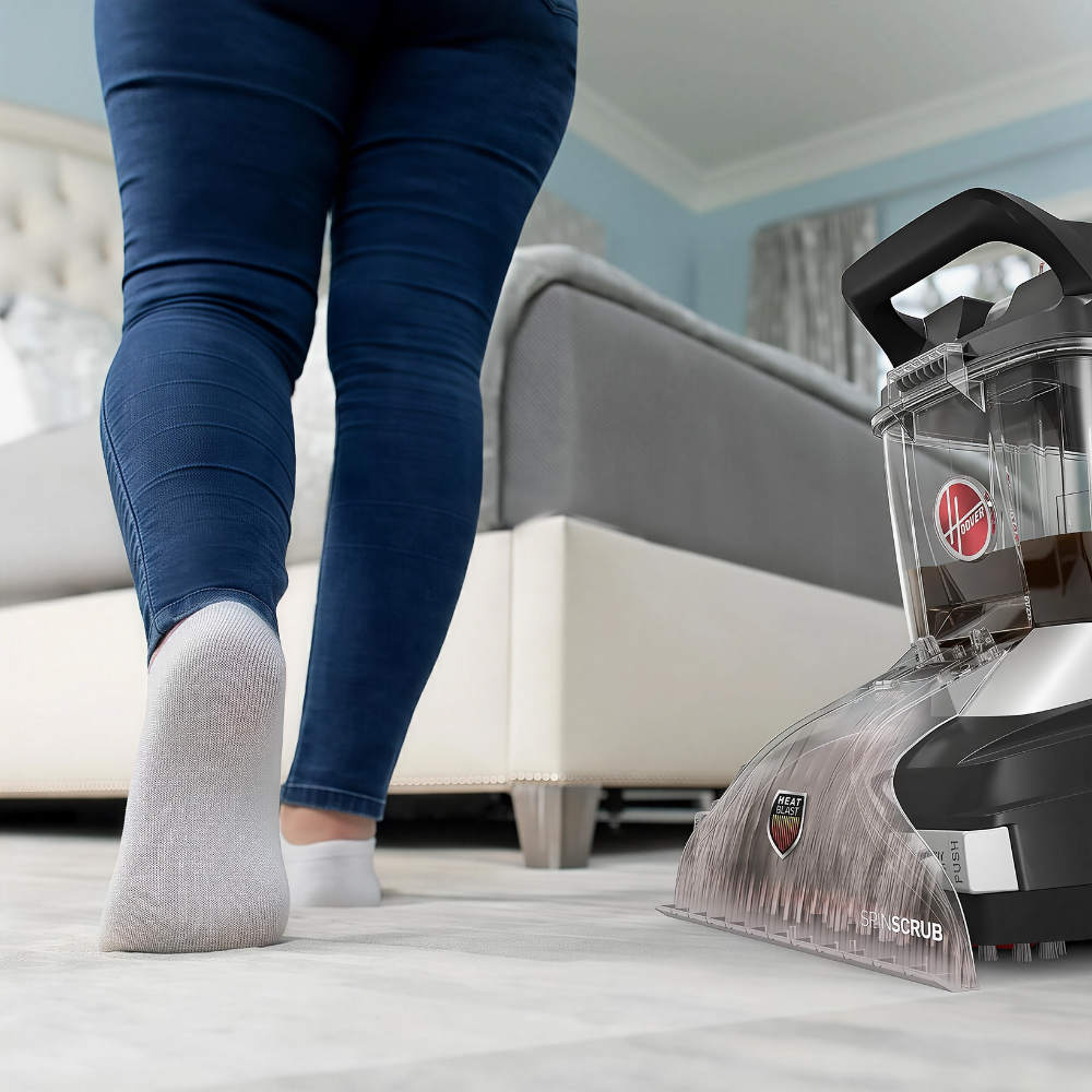 نظافة عميقة لـالسجاد والمفروشات مع Hoover Power Scrub XL. تعمل ٥ فرش SpinScrub® على فرك الألياف من زوايا متعددة، وتسرّع HeatForce™ التجفيف مع وضع Quick Clean. يوفر AutoMix مزجًا تلقائيًا للمنظف لنتائج ثابتة، ويمنحك نظام الخزانين (٤٫٧ لتر نظيف / ٤٫٧ لتر متسخ) مع خزان TruMAX™ قدرة أكبر للتنظيف بدون توقفات متكررة. ومع خرطوم ٣٫٥ م وسلك ٨ م ومدى ١١٫٥ م ومسار ٣٠ سم، هتوصل للسلالم والكنب والمساحات الكبيرة بسهولة. يأتي مع طقم ملحقات كامل وضمان دولي.