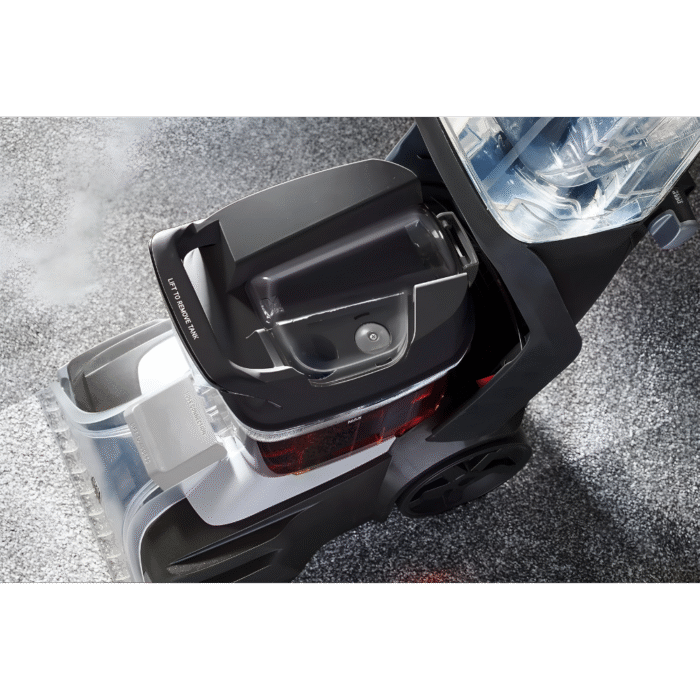 - ملحقات مرفقة: أداة شقوق، أداة تنجيد غسيل، أداة SpinScrub يدوية، خرطوم، أداة تنظيف الفوهة، حقيبة ملحقات، عبوة منظف تجريبية.
