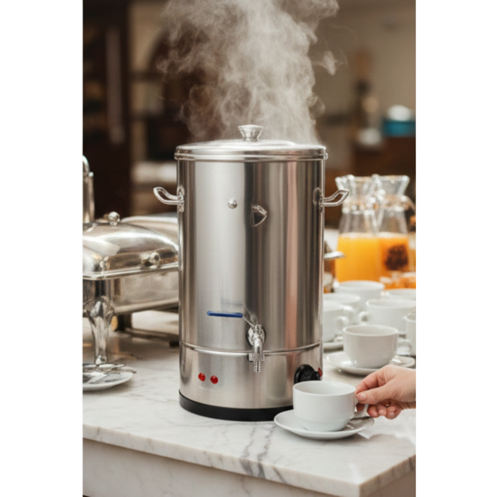 ملحوظة: السعة ٢٥ لتر ميزة أساسية لأنها تقلل مرات إعادة الملء بشكل كبير—وده يحافظ على استمرارية ركن الضيافة وقت الزحمة.