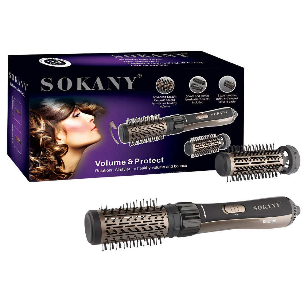 اجعلي روتينك أسرع مع سوكاني SD-903، فرشاة هواء ساخن دوّارة ٢ في ١ تجمع التجفيف والتصفيف في خطوة واحدة. تعمل الفرشاة على تدفق الهواء مع دوران تلقائي لتنعيم الخصلات ورفع الجذور وصنع حركة طبيعية، فتوفّر عليك استخدام مجفف وفرشاة مستديرة في نفس الوقت. النتيجة: تسريحات يومية أنيقة بجهد أقل وفي وقت أقصر.