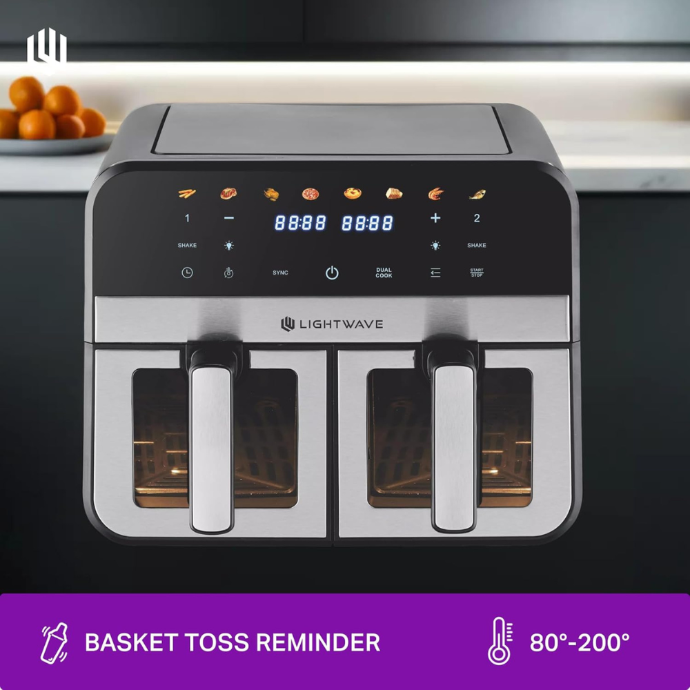 صُمِّمت لايت ويف LW-ARF-DZ10L400 لتلبية احتياجات العائلة بسعة ١٠ لتر كبيرة وقدرة عالية ٢٤٠٠ وات تمنحك تسخينًا سريعًا وتوزيع هواء متجانس للحصول على قرمشة بزيت أقل ونضج متساوٍ. عبر لوحة تحكّم رقمية باللمس يمكنك الاختيار بلمسة واحدة من بين ٨ برامج مسبقة للأطعمة الشائعة مثل البطاطس، الدجاج، السمك، الخضار، الخَبز، إعادة التسخين، والإبقاء دافئًا، كما يمكنك الضبط اليدوي لدرجة الحرارة ضمن ~٨٠–٢٠٠°م والمُؤقّت حتى ~٦٠ دقيقة بما يناسب وصفاتك. سواء تطهو وجبة نهاية الأسبوع أو تُحضّر دفعات للوجبات الجاهزة للأسبوع، تمنحك هذه القلاية نتائج ثابتة مع تنظيف أسهل.