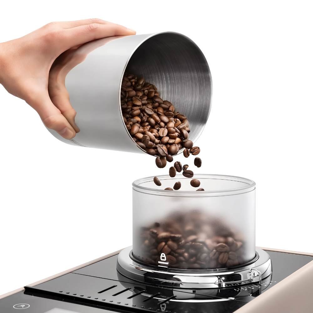- أوتوماتيك بالكامل مع طاحونة مدمجة من الحبوب إلى الكوب.