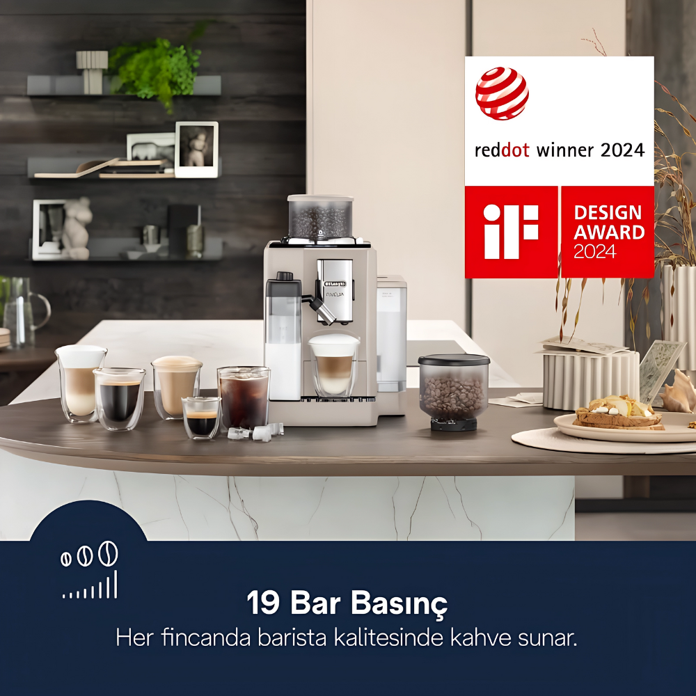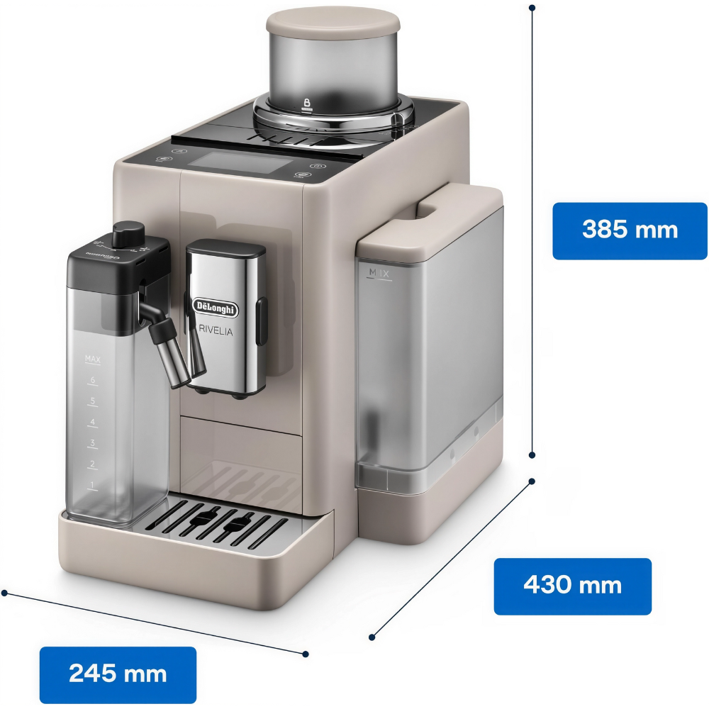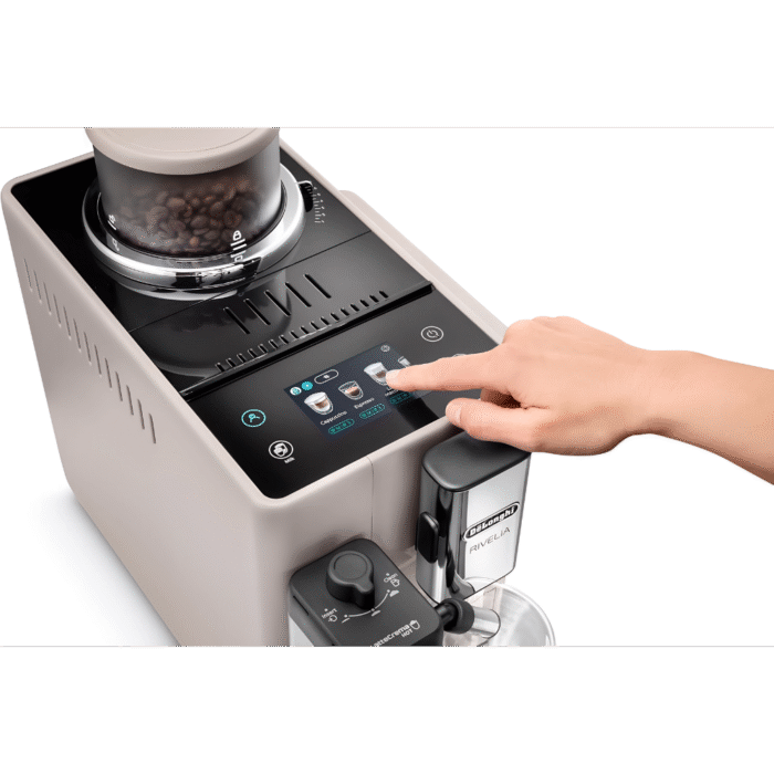 تقدّم De’Longhi Rivelia EXAM440.55.BG تجربة قهوة متكاملة من الحبوب إلى الكوب مع ١٦ وصفة بلمسة واحدة عبر شاشة لمس ملوّنة ٣٫٥”. يوفر نظام LatteCrema Hot رغوة حليب ساخنة كثيفة مع تنظيف تلقائي، بينما تسمح تقنية Bean Switch بتبديل نوع البن بسهولة، وتقوم Bean Adapt بضبط الطحن والجرعة ودرجة الحرارة حسب نوع الحبوب. تعمل بقدرة ١٤٥٠ وات وبمضخة ١٩ بار مع خزان ماء ١٫٤ لتر وتصميم صغير يناسب المطابخ الحديثة. يشمل ضماناً دولياً.
