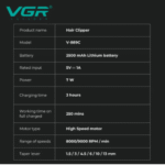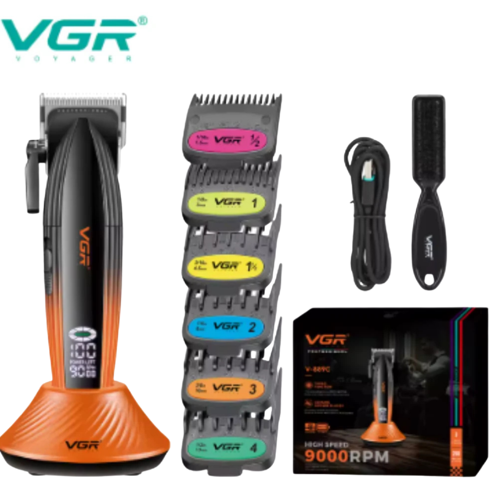 ماكينة قص الشعر الاحترافية VGR – شفرة DLC – سرعة ٩٠٠٠ دورة/دقيقة – مع قاعدة شحن – موديل V-889C – ضمان ٦ شهور