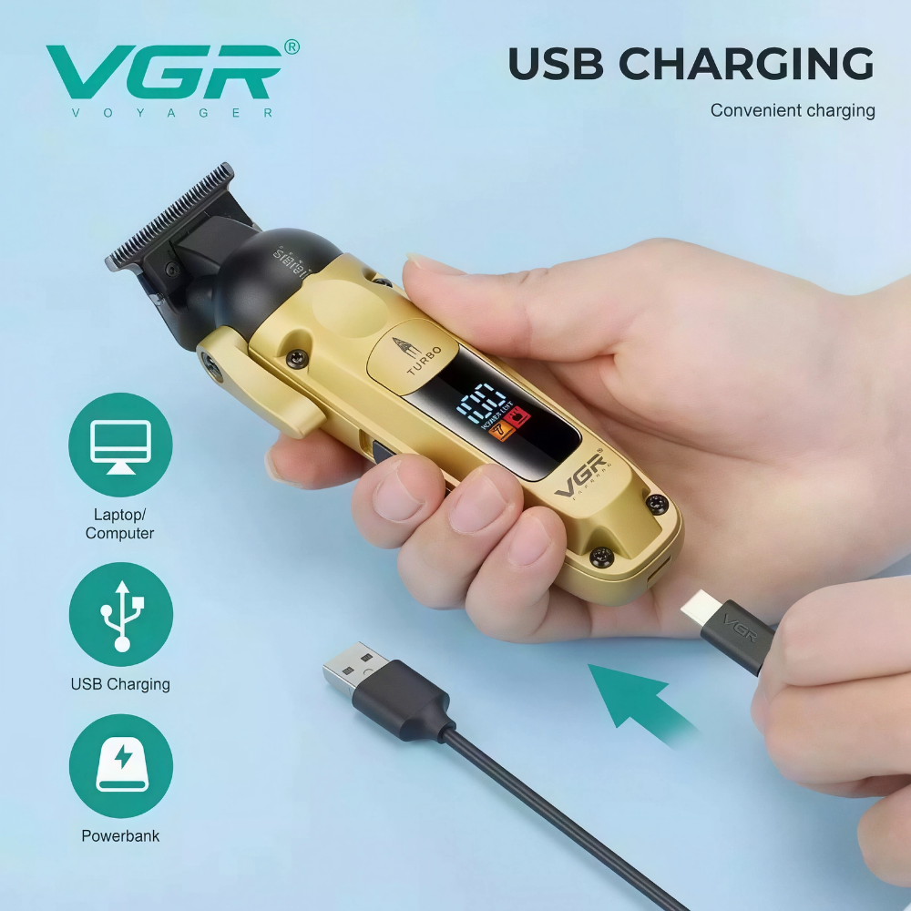 ماكينة قص الشعر VGR للرجال – V-274 – بطارية ١٥٠٠mAh – شحن USB – ضمان ٦ شهور