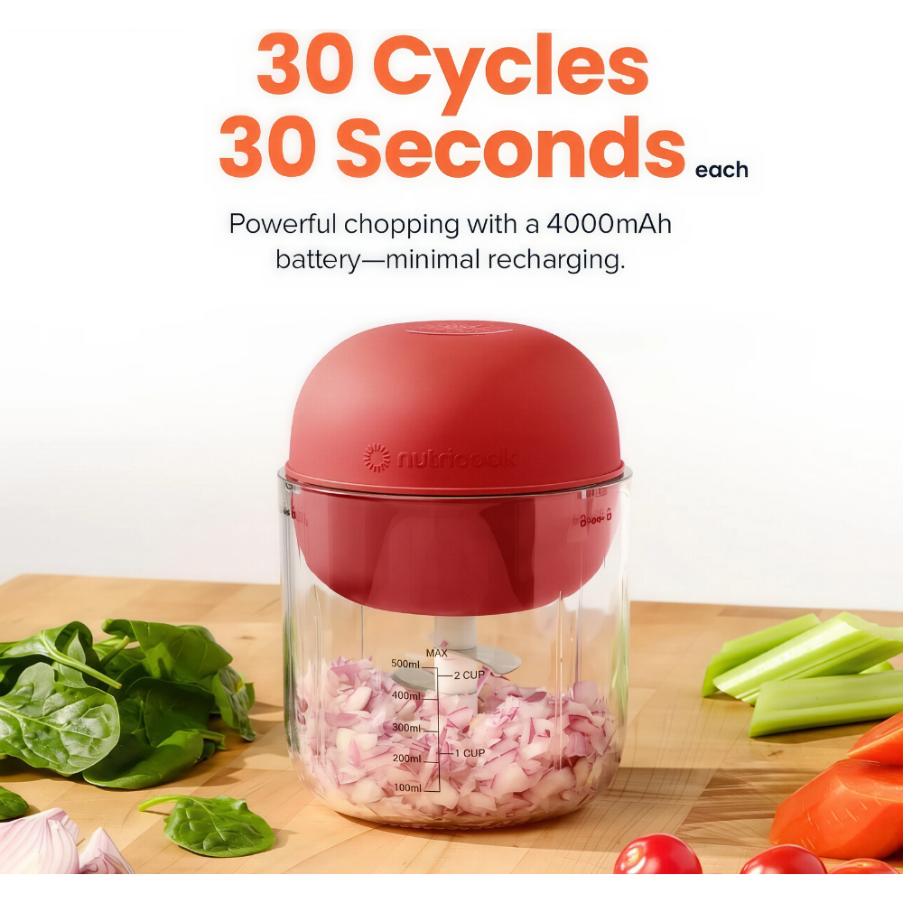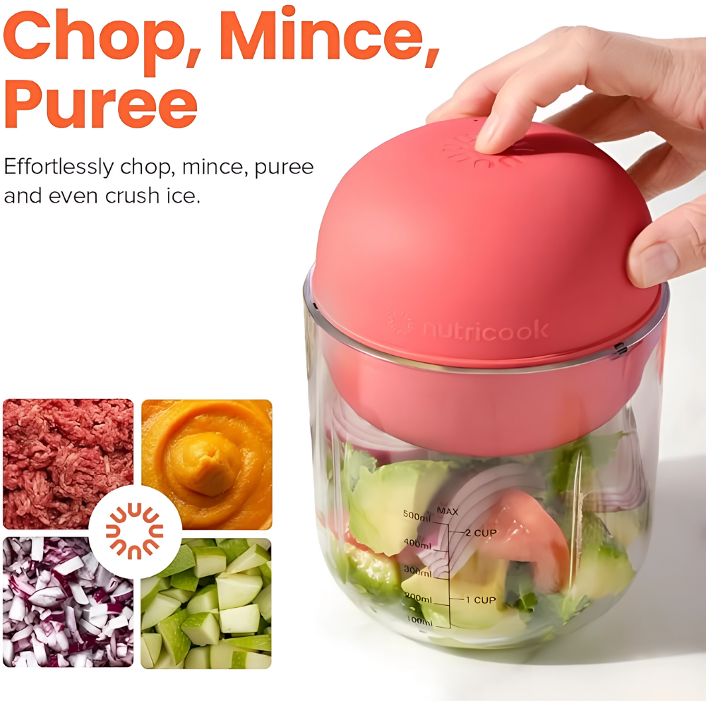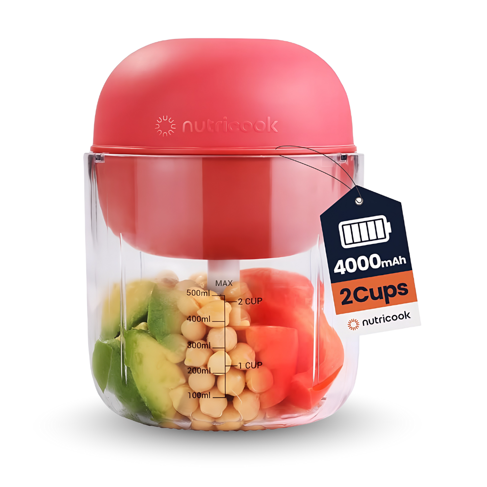 اكتشفي سهولة التحضير مع مفرمة نيوتري كوك CH600 التي تمنحك حرية الحركة بدون أسلاك بفضل بطارية ٤٠٠٠ مللي أمبير قابلة لإعادة الشحن. بضغطة واحدة فقط تحصلين على نبضات متوازنة تُسرّع فرم الثوم والبصل والأعشاب والمكسرات. السعة ٥٠٠ مل مثالية لاستخداماتك اليومية وصناعة تتبيلات سريعة أو إضافات للسلطات، بينما تعمل الشفرات الرباعية من الاستانلس ستيل على مستويات متعددة لضمان قوام متجانس بأقل مجهود.