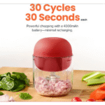 تدعم المفرمة شحن USB-C سريع ليكتمل الشحن في نحو ٣ ساعات، كما أن التصميم خفيف وصغير الحجم يسهل حمله وتخزينه. غطاء بآلية قفل للحد من الانسكاب، وتشغيل هادئ، وأجزاء قابلة للفك لسهولة التنظيف—فقط امسحي قاعدة الموتور دون غمرها بالماء. يتألق اللون الأحمر الكرزي بلمسة عصرية على مطبخك. ومع ضمان دولي، ستحصلين على أداة موثوقة لرحلات التخييم، والمطبخ اليومي، وكل تحضيرات الوجبات السريعة.