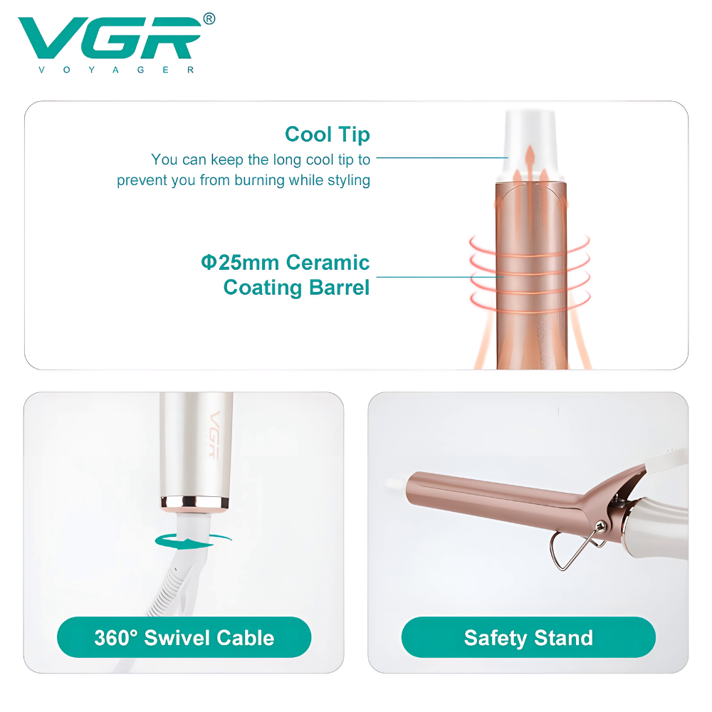 مكواة فرد الشعر الكهربائية الاحترافية VGR للنساء لون أبيض – موديل V-578 (ضمان ٦ شهور)