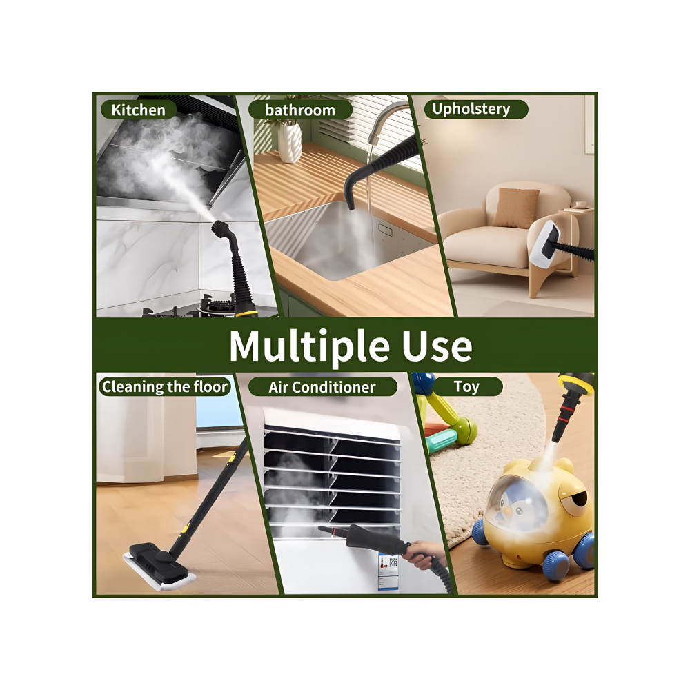 منظف بخار محمول — قدرة ١٢٠٠ وات — ضغط ٣٠٠ كيلو باسكال — خزان ٣٥٠ مل — متعدد الاستخدامات ١٤ في ١